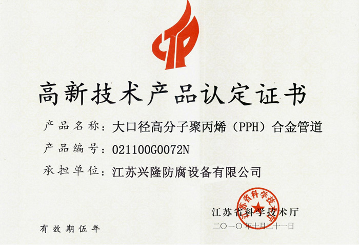 高新技術產品證書